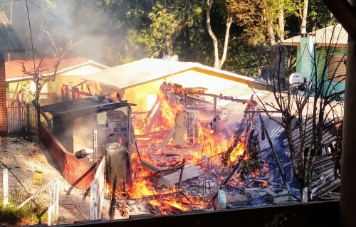 Um incêndio onde a origem do fogo é desconhecida destruiu completamente uma casa e os pertences que havia no final desta tarde de sexta-feira, dia 2, na localidade de Vila Cascata, interior de Horizontina.