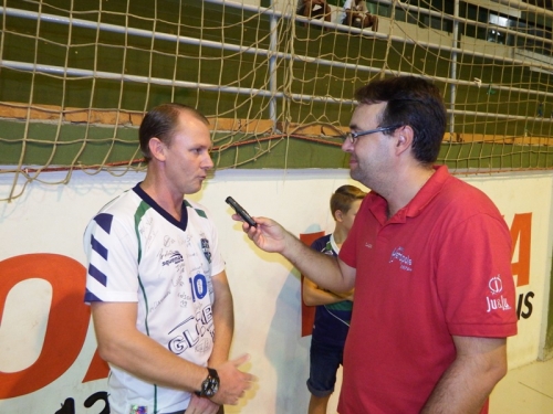 André Klein, da Rádio Boa Nova de Boa Vista do Buricá ouvindo o pivô Maurício.