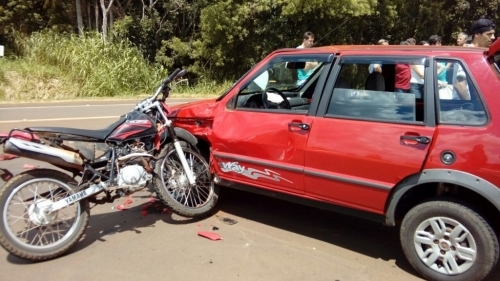 Ela esteva em uma motocicleta que colidiu em um veículo Uno Mille. O automóvel cortou a frente da moto, que acabou se chocando no rodado dianteiro do veículo.