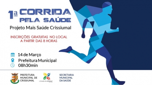 Dia 14 de março será realizada a "Primeira Corrida pela saúde", serão 8 km dentro da cidade, venha com roupa confortável, terá apoio com água e frutas. Caminhando ou correndo toda a população está convidada para a atividade.