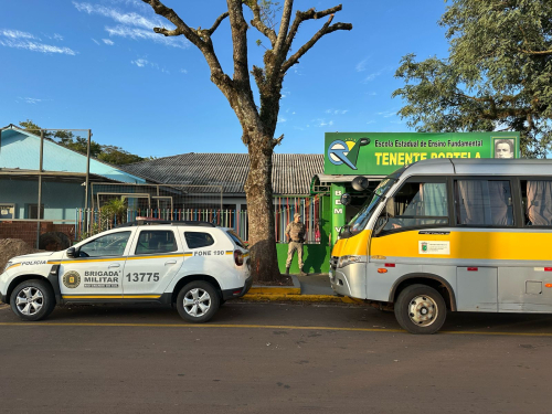 Na terça-feira (01/4), Policiais Militares do 7°BPM, realizaram policiamento ostensivo nas escolas dos municípios de Tenente Portela e Miraguaí.