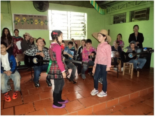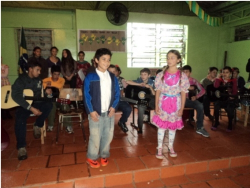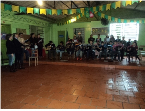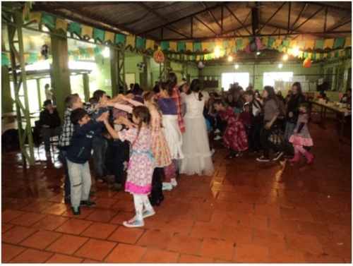 O dia foi de integração, almoço coletivo, quitutes juninos, danças, apresentações dos/as alunos/as da Escola Uruguai e da Escola Tuiuti. Também houve apresentação musical dos/as alunos/as do Programa Mais Educação.