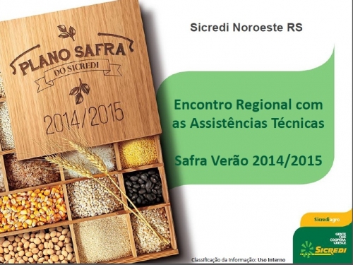 Tem por objetivo apresentar e definir alinhamentos, com os profissionais da Sicredi, relativos ao Plano Safra que neste ano 2014/2015 representa um montante de R$140.000.000,00 para atender em torno de 7.000 famílias de agricultores associados da Sicredi Noroeste RS.