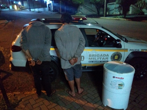 Na noite desta quinta-feira (01/08), por volta das 23h30min uma guarnição da Brigada Militar localizou três homens carregando uma máquina de lavar roupas.