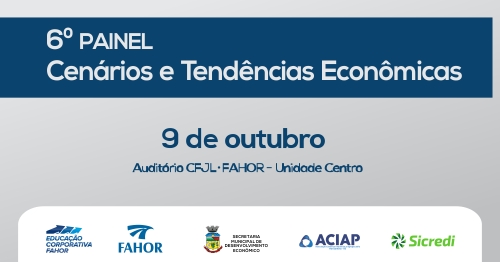 Acontece na próxima terça-feira, dia 9 de outubro, no Auditório do CFJL/FAHOR Unidade Centro, a 6ª edição do Painel Cenários e Tendências Econômicas, com o tema: O que esperar do Brasil com o novo governo?