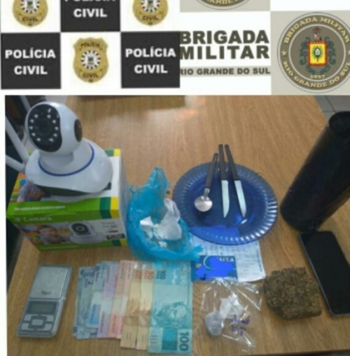 Na residência foram apreendidos 143 gramas de maconha, 26 gramas de cocaína, 01 balança de precisão, R$ 233,00 e material para embalar drogas.