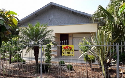 Duarte vende casa de alvenaria de 161,54m², com 3 quartos, 2 salas, 2 banheiros, cozinha, despensa, lavanderia, garagem pra dois carros, toda cercada, localizada próximo ao centro da cidade, na rua Alto Uruguai, em frente ao Voigt Pneus. terreno de 1.181,52M². R$ 349.000,00