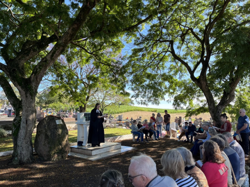 O Guia Crissiumal acompanhou a manhã no Cemitério Municipal, onde a pastora Elisa Webber, da Igreja Evangélica de Confissão Luterana no Brasil (IECLB), conduziu o tradicional culto, que contou com a presença de um bom número de fiéis.