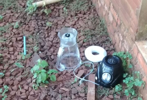 O botijão de gás foi levado e o liquidificador deixado no pátio pelo meliante.