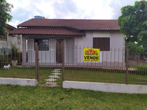 Duarte vende casa de alvenaria de 69,83m², mais quiosque (garagem) de 35m² com piscina, telhas de concreto, terreno de 312,50m², imóvel todo cercado, localizado na rua São Nicolau, esquina com a Rua Gramado, 47, Bairro Industrial. R$ 230.000,00