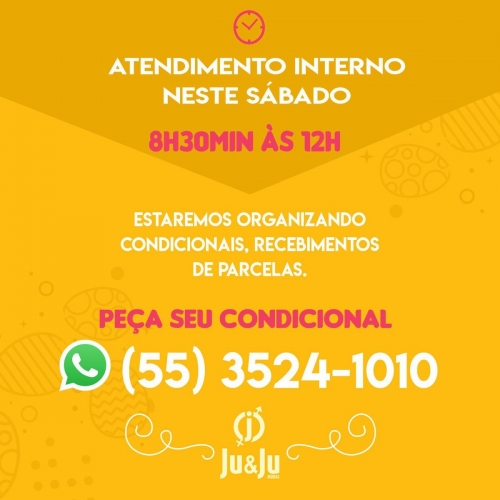 Comercial - 03/04/2020 - Páscoa Ju e Ju Modas. Toda loja com 20% de desconto e parcelado em 6 vezes