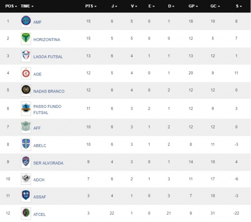 O outro representante regional, o Horizontina Futsal, é o vice-líder, invicto e com 100% de aproveitamentos, com 15 pontos.
