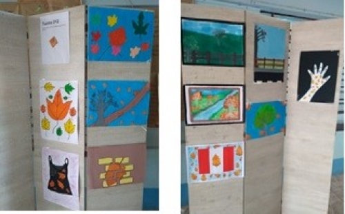 Na turma 212 foram realizadas pinturas a partir de imagens de folhas de plátanos, cada aluno recebeu uma pequena imagem com folha de plátano já com uma coloração alaranjada e teve que criar uma composição com a imagem observada .