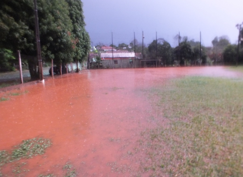 Na baixada da Cotrimaio, o campo da Afucomaio, ficou completamente tomado pela água. A residência da família Breunig, que fica ao lado do campo, na Rua Coroados, também teve parte invadida pela água, trazendo sujeira e transtornos aos moradores.