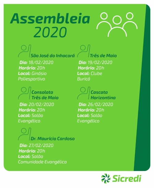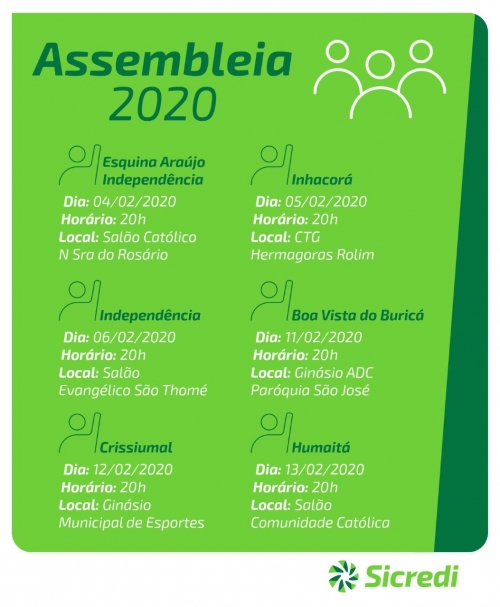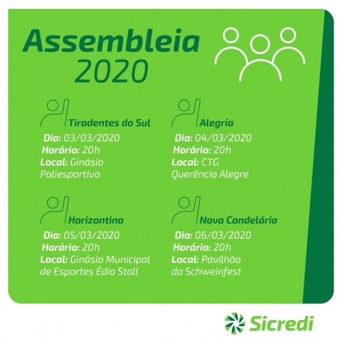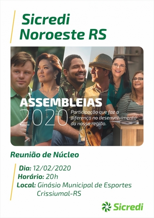 A Sicredi Noroeste realiza no próximo dia 12 de fevereiro de 2020, a tradicional assembleia anual em Crissiumal. A reunião acontece no Ginásio Municipal de Esportes iniciando pontualmente às 20h.