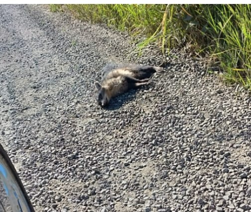 O seguidor do Guia Crissiumal Alexandre Lermen Sturm fotografou o animal sem vida, morto por atropelamento na ERS 305, entre o final do perímetro urbano de Crissiumal e a sede do Flamengo FC na manhã dessa terça-feira (04/03), carnaval.