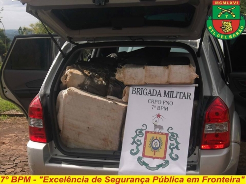 Na manhã desta quarta-feira (04/06) após monitoramento realizado pelo efetivo da Agência de Inteligência do 7º BPM, com apoio dos efetivos do Pelotão de Operações Especiais, do Policiamento Ostensivo de Três Passos e de Bom Progresso, foi abordada uma Tucson emplacada no Estado do Paraná, carregada com grande quantia de entorpecente - Maconha.