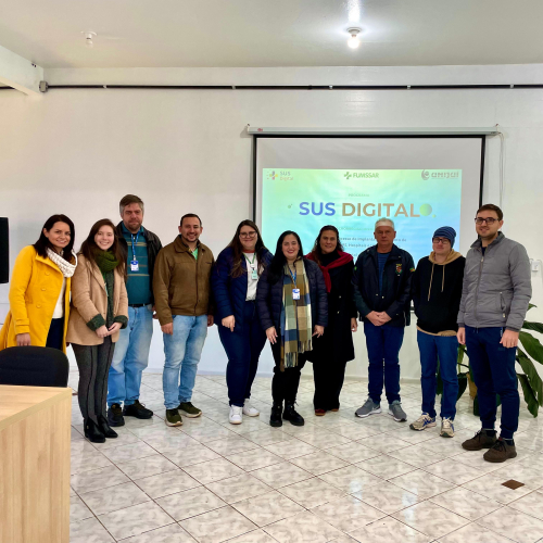A capacitação foi conduzida pelos instrutores Alice Mendonça e Vanderlei Schneider, da Unijuí, e teve como foco o SUS Digital – programa do Ministério da Saúde que visa modernizar e digitalizar o Sistema Único de Saúde.