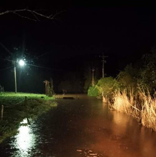 Granizo, alagamentos e vento provocaram inúmeros transtornos. A foto do topo é de nossa seguidora Claudia Hunsche e mostra a situação em que ficou a estrada na localidade de Lajeado Mirim, no interior do município, nas proximidades das propriedades rurais de Marcelo Mallmann e Cristiano Hunsche.