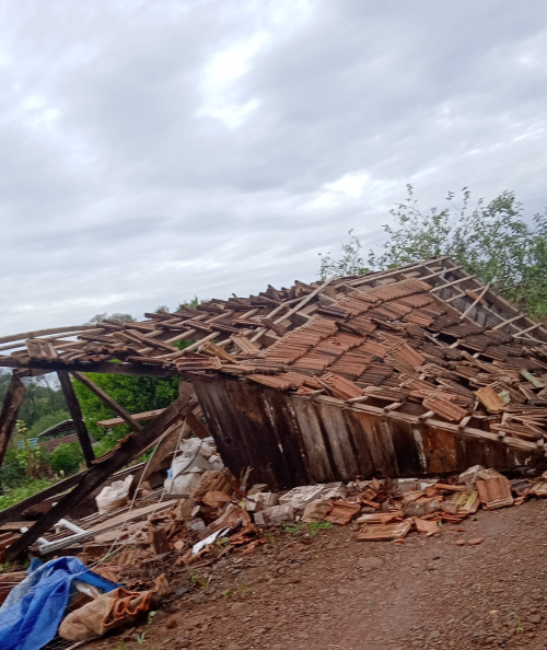 Um galpão caiu com a força do vento na localidade de Alto Crissiumal na madrugada dessa segunda-feira (04/08). O fato ocorreu na propriedade da família Franzmann.