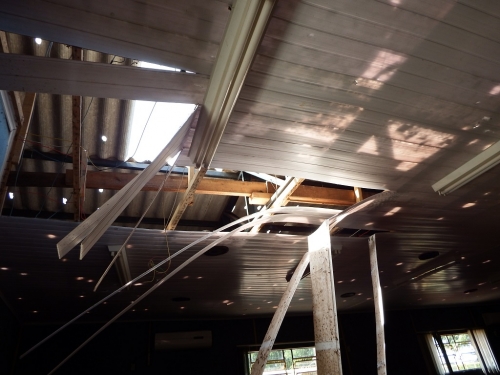 Auditório da Escola Ponche Verde ficou parcialmente destruído (foto: Leila Ruver / Guia Crissiumal)