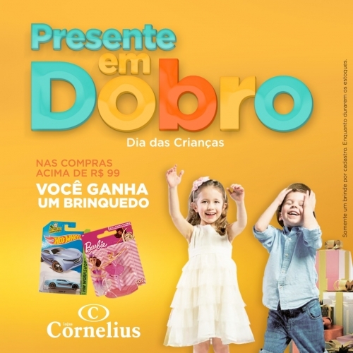 Comercial - 04/10/2020 - Dia das Crianças com presente em dobro nas Lojas Cornelius