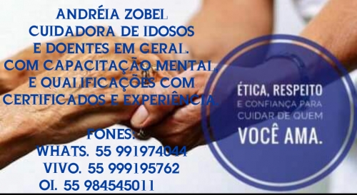 Se precisar de um cuidados de idosos ou enfermos em Crissiumal ou região você pode contatar com Andréia Zobel.
