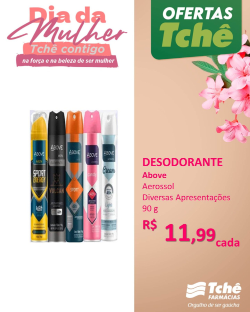 Desodorante Above aerossol feminino e masculino: R$ R$ 11,99
