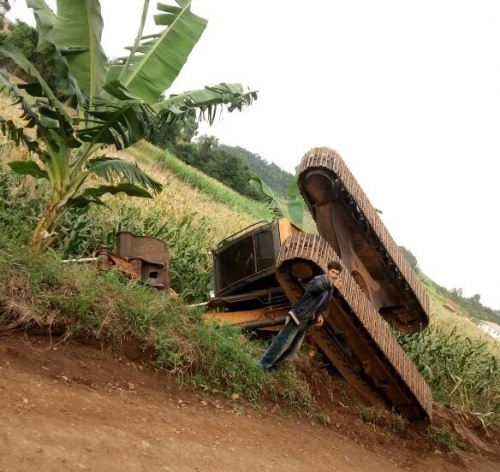 O equipamento tombou durante um acidente na noite de sexta-feira, ficando tombada ao lado de uma estrada.