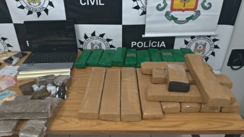 Nas buscas realizadas, foram apreendidos aproximadamente 25 quilos de maconha, duzentos gramas de cocaína, dois veículos e o valor de R$ 2.435,00 (dois mil quatrocentos e trinta e cinco reais).