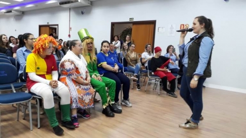 Depois das experiências, o grupo de estudantes reuniu-se no Auditório, onde a Diretora Tânia Altíssimo apresentou os serviços prestados pela instituição e também as maneiras que as pessoas podem auxiliar a APAE.