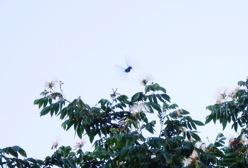 As árvores são da espécie Ingá (Inga edulis). Mas os beija-flores não são os únicos que ficam atraídos pelo ingazeiro quando está florido, outros tipos de animais, como besouros, borboletas, vespas e mariposas também são atraídos e estão no local.