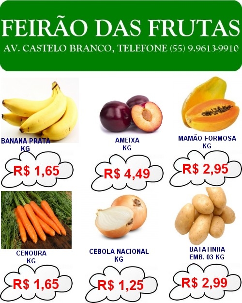 O Feirão das Frutas conta com entrega a domicilio e na Rodoviária.