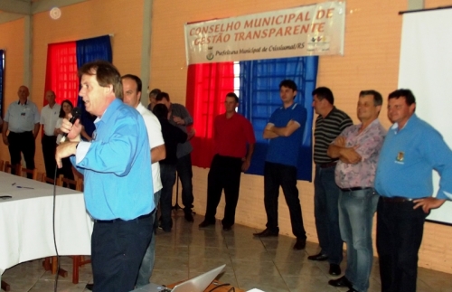 A mesa principal foi composta pelo Prefeito Walter Luiz Heck, pelo Vice-Prefeito Ivano Adelar Gress Zorzo, pelo Vice-Presidente da Câmara de Vereadores Ivens Grun e pelo Presidente do Conselho de Gestão Transparente Marcos Zimmermann, onde todos fizeram o uso da palavra.