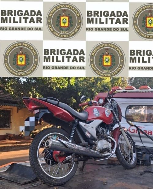 Na tarde deste sábado, dia 5, durante execução da Operação Cerco Fechado a Brigada Militar recuperou uma motocicleta, na localidade de Vila Pranchada, divisa com Crissiumal.