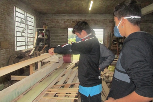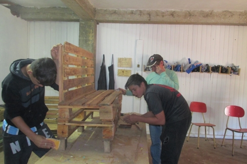Neste ano, já foram confeccionados na Atividade de Marcenaria Criativa, chaveiro personalizado, descanso de panela, tábua de picar alimentos, futebol de pregos, sendo que cada adolescente levou o seu para casa, puffs, os quais estão sendo utilizados no espaço de acolhida das crianças e adolescentes na Entidade. No momento, estão sendo confeccionados porta cuias.