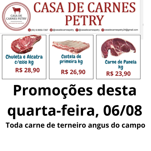 Comercial - 06/08/2025 - Promoções desta quarta-feira na Casa de Carnes Petry de Crissiumal
