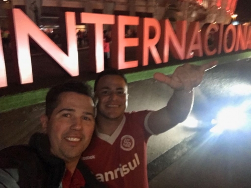 A trabalho na região metropolitana nesta quarta-feira, a dupla de amigos Guilherme Ullmannn e Jerri Voos, colorados fanáticos, foram ao Beira Rio acompanhar a partida entre Internacional e Flamengo, que deu a liderança do brasileirão ao clube de Porto Alegre.