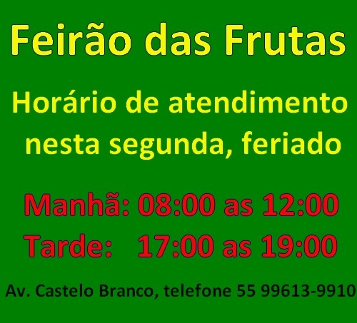 Comercial - 06/09/2020 - Feirão das Frutas terá atendimento em horário diferenciado nesta segunda, feriado