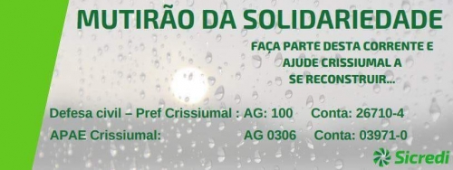 Os gerentes Luiz Carlos Kroetz e Pérsio Schweig também reforçaram as contas para depósitos de doações e deixaram claro que nenhuma das ações realizadas até aqui é para promoção/propaganda, e sim de apoio aos crissiumalenses. Imagem abaixo: