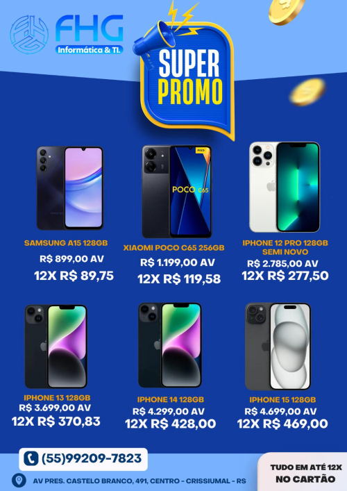 Quer um smartphone novo com descontos imperdíveis? 🚀 Na FHG Informática e T.I, temos ofertas imperdíveis para você trocar de celular e aproveitar o que há de melhor em tecnologia!