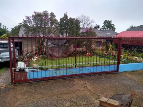 Casa de alto padrão, com telha de concreto e piscina, defronte a creche.Casa com 69,83m² mais quiosque de 35,00m² em terreno de esquina, todo cercado, com grade de 312,50m², na Rua São Nicolau esquina com a Rua Gramado n°47. R$ 230.000,00