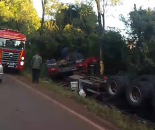 Um acidente de trânsito no início da manhã desta segunda-feira (07), envoleu uma carreta que capotou na letral da RS-342 em Horizontina. O acidente ocorreu por volta das 7h10min.