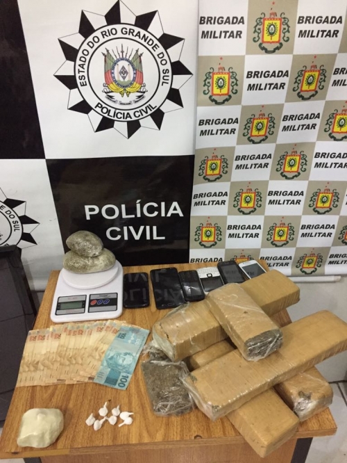 No local os policiais apreenderam aproximadamente 5 kg de maconha, 125 gramas de cocaína, balança de precisão, um veículo e demais objetos.