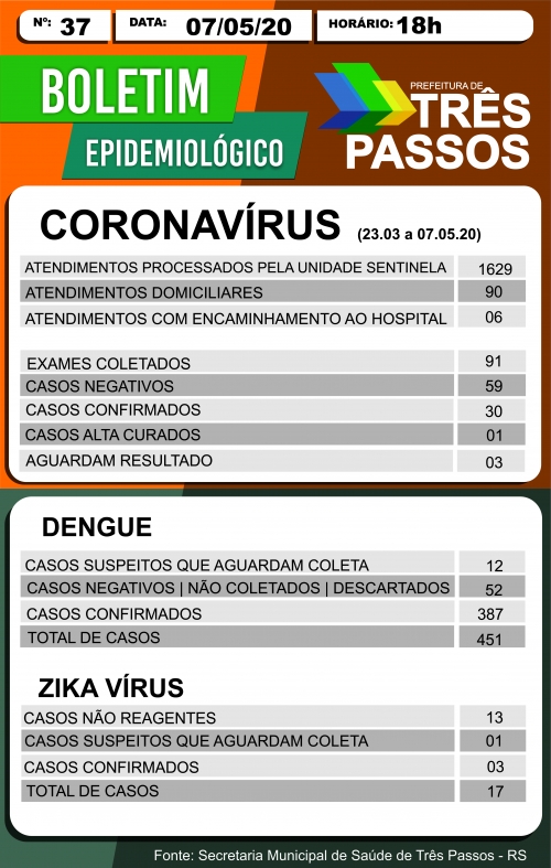 Em live no facebook, a prefeitura de Três Passos confirmou que o município chegou nessa quinta-feira (07) aos 30 casos de covid-19.