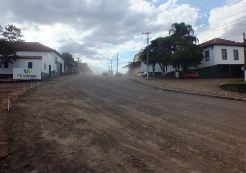 A rua que é bastante movimentada recebeu camadas de pedra brita e o movimento brusco de veículos acaba afetando o material depositado e compactado, por isso pede-se o auxílio da população no cuidado, já que o asfaltamento do local será um enorme ganho para todos que utilizam a XV de Novembro.