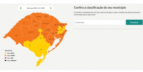 Das 20 regiões em que foi dividido o território gaúcho, três que estavam com bandeira amarela (risco baixo) passaram para laranja (risco médio): Ijuí (da qual Crissiumal faz parte), Santa Rosa e Santa Cruz do Sul.