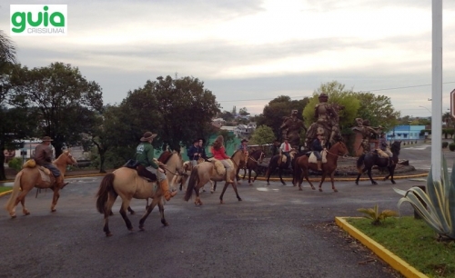 Um grupo de mais de 30 pessoas, em seus cavalos, partiu com destino ao município de Alegria, próximo a Três de Maio, de onde virá a Chama Crioula para Crissiumal. O grupo é formado por homens e mulheres, inclusive com vários jovens. Parte saiu da cidade (fotos) e outra parte iria aderir ao grupo no caminho, em localidades do interior de Crissiumal.