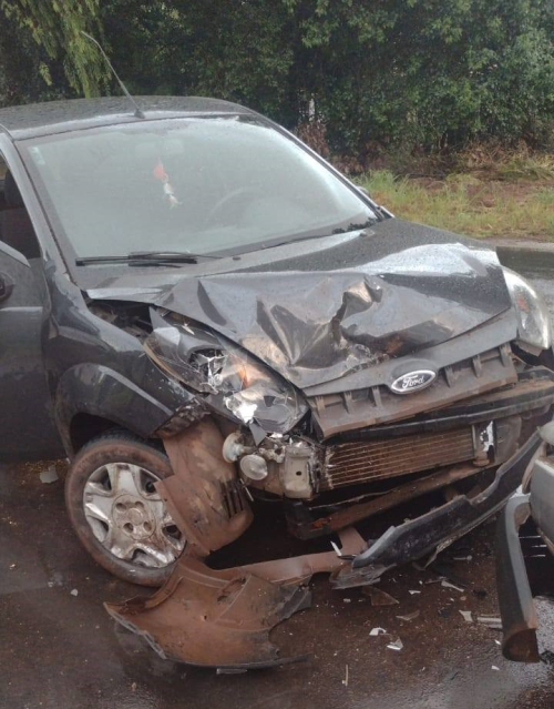 Colisão envolvendo um Fiat Uno e um Ford Fiesta