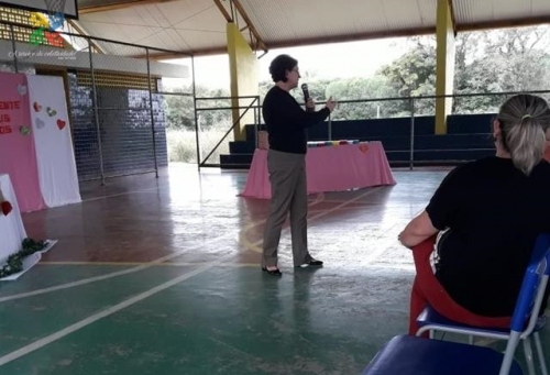 A palestra foi realizada na Quadra Poliesportiva da Escola e reuniu um bom número de mulheres. Outras atividades também marcaram o encontro.